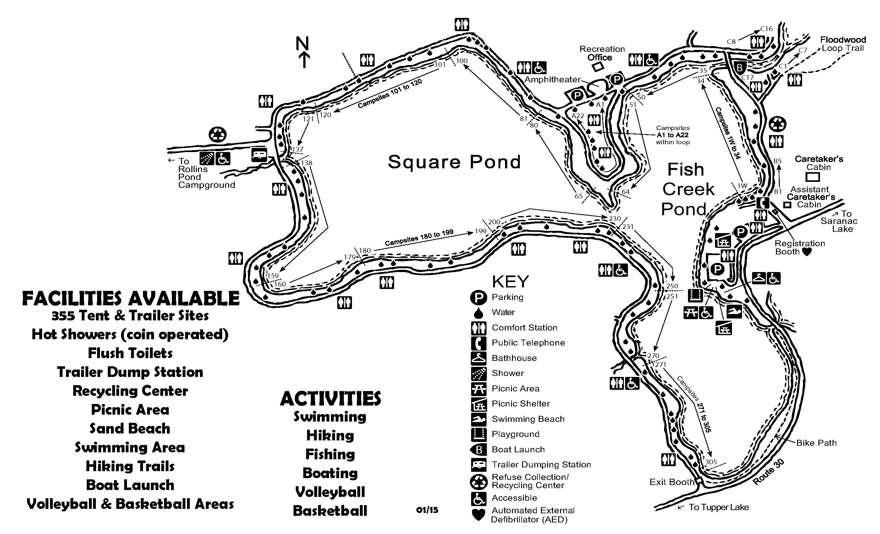 Amenities: The amazing thing about this campground is that nearly every site is on the lake shore and has access directly to the lake so that you can launch small boats from your site. The camp road is paved and a loop is possible to make for an almost 5 mile bike path around the camp. There is direct access to many hiking trails both around and away from the camp. There is an adjacent campground called Rollins Pond that has a little more of a remote feel if you don’t like the looky-lou atmosphere that you can get into with Fish Creek.