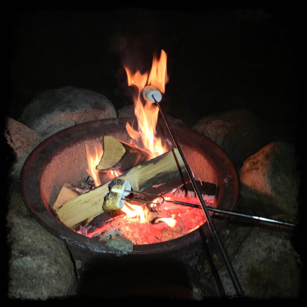 Of course, then there is the question of how you toast your marshmallows and whether you include one or two in the s’more. Are you more of a catch the marshm allow on fire and blow it out until it is charred? Or more of a roll it above the flames until it is toasty through and light brown on the outside and almost falling off the stick? Either is fine and just a matter of preference!