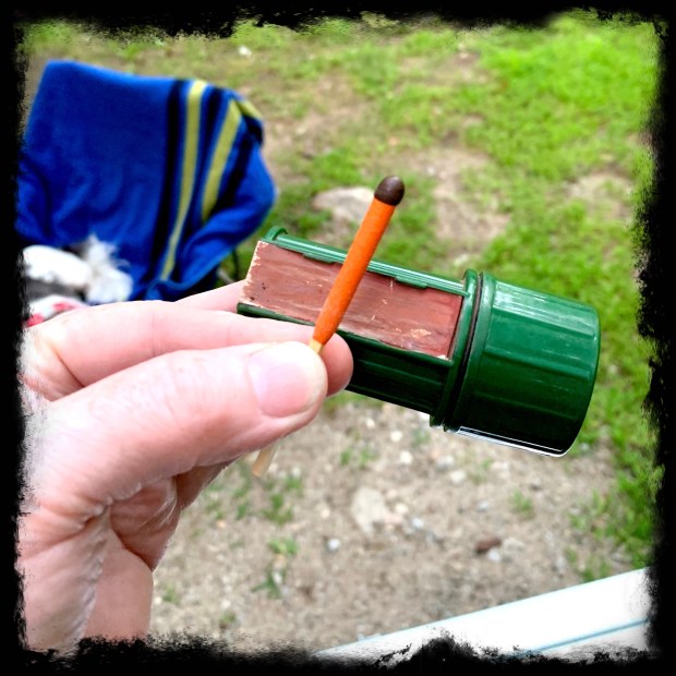 These are matches that light a little like a firecracker and they sizzle and burn bright for 40 seconds or so before burning out. I have two waterproof containers for them that you can put new striking flints on the side of when they rub down. They make it easy to have handy at camp and impervious to any rain if they get left out. I like to drop the sticks in the fire once they are fizzled.
