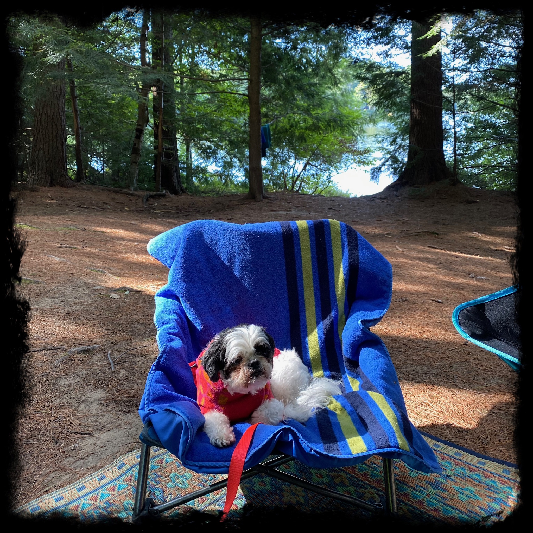 We got to Rollins and the site we got was perfect. It would have been great any year, but particularly in 2020 when we were trying to minimize exposure to others. It wasn’t too close to the road, there was good access to the pond, the neighbors weren’t too close and it was surrounded by really tall evergreen trees. We settled in to just relax and enjoy. There was supposed to be a good amount of rain the first night, so we setup our “serious rain site” with the shadesail on the side of the camper to cover the entrance and protect our chairs and the Big Agnes Three Forks over the picnic table with two sidewalls to cover the sides on the outside of our camp.