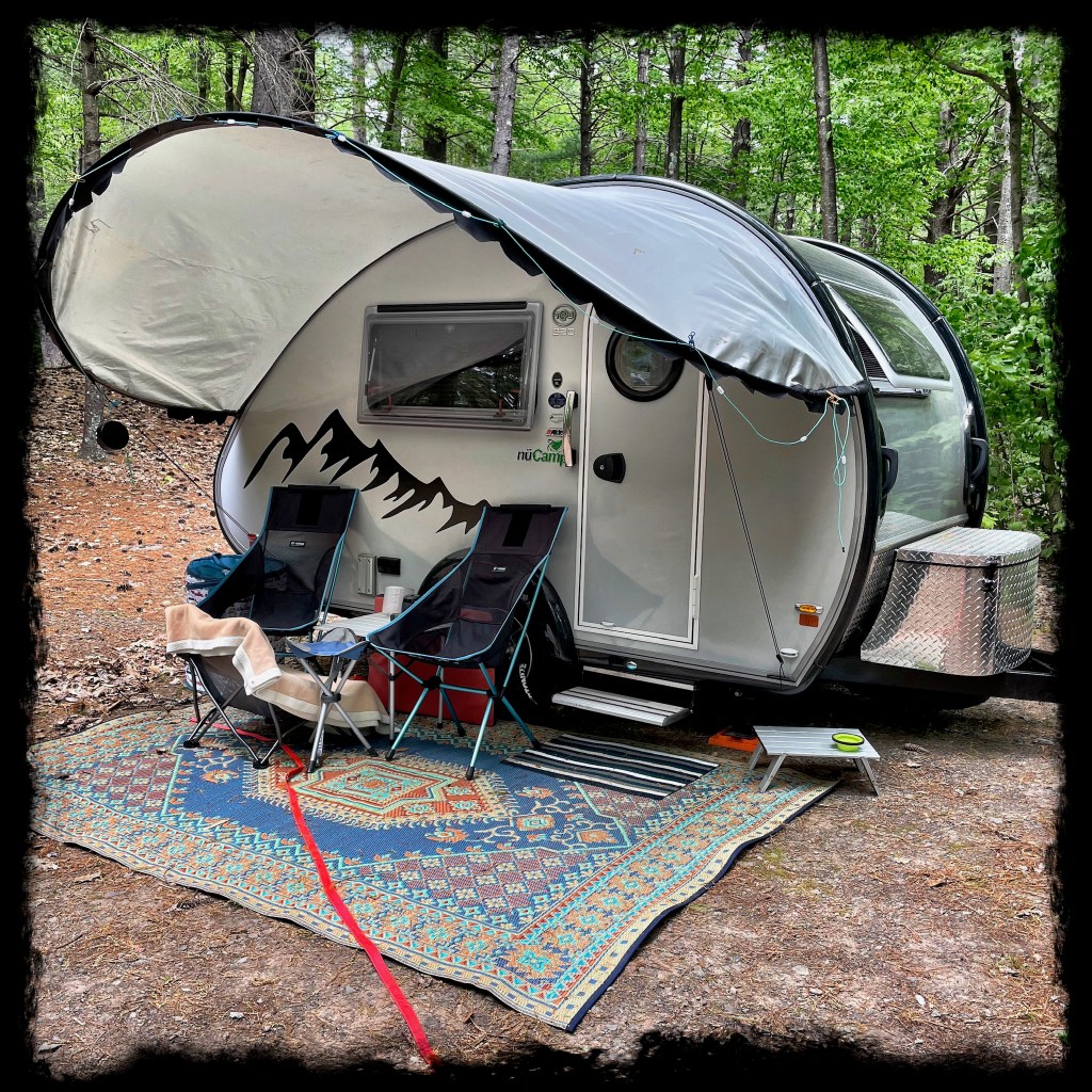 At this point, we’ve had two spring shake-out trips and feel pretty prepped for camping season. Looking forward, we’re starting to sort things out so we can see what gets canceled or what work schedules will look like before we pickup a couple more weekend reservations. We took these first couple of trips super easy–go with the flow, do what feels safe, check out a few sights, enjoy some quiet time at camp reading and writing and sitting in front of a fire and chatting. Getting away these days is not so much about going and doing, but about having a break from the reality of the times we are living through. Camping makes that easier, even if you are just curled up in a blanket watching other campers out the window, which is always good entertainment!