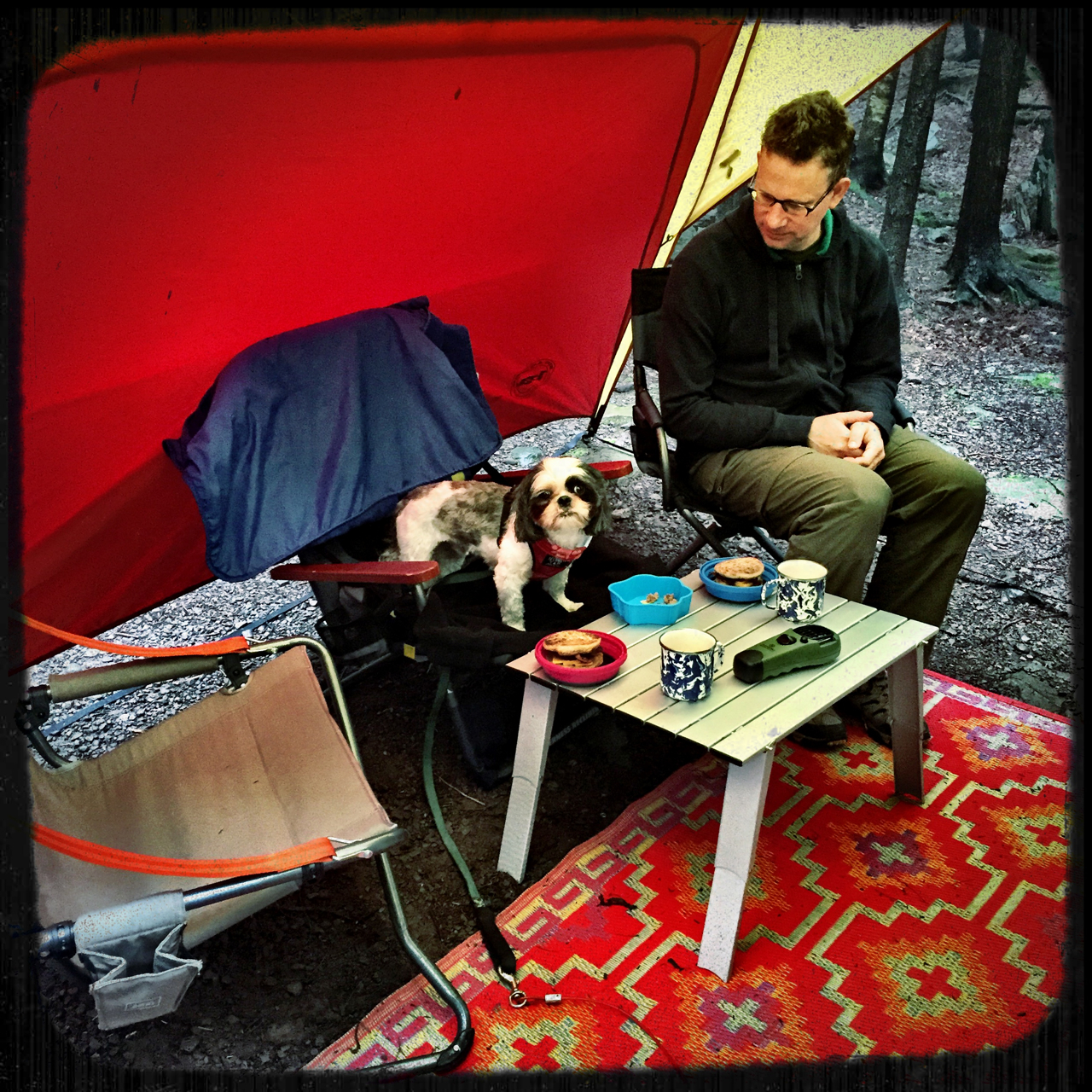 If it seems like it might rain, you will definitely want to figure out where you are going to position your shelter (or shelters) in addition to the camper. This positioning can make or break a rainy trip.