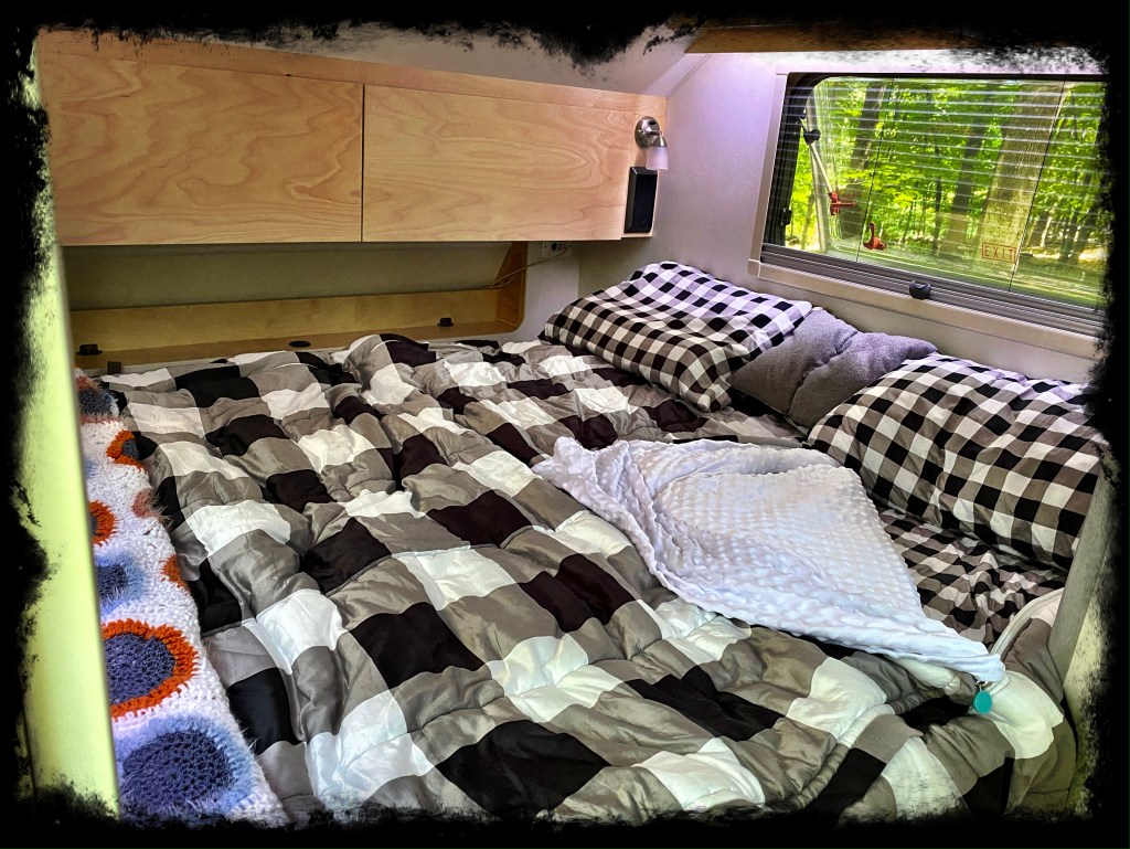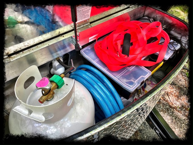 After more than 25 years of camping together, we finally decided to stop pretending that camping was just a temporary thing we do in the summer and recognize that it is part of our lifestyle. The camper is something we use when we travel, but also a part of our outdoor life at home and something we use from the spring through the fall. It’s a place to nap and write and read and relax as well as a place to sleep and eat when we’re on the road.